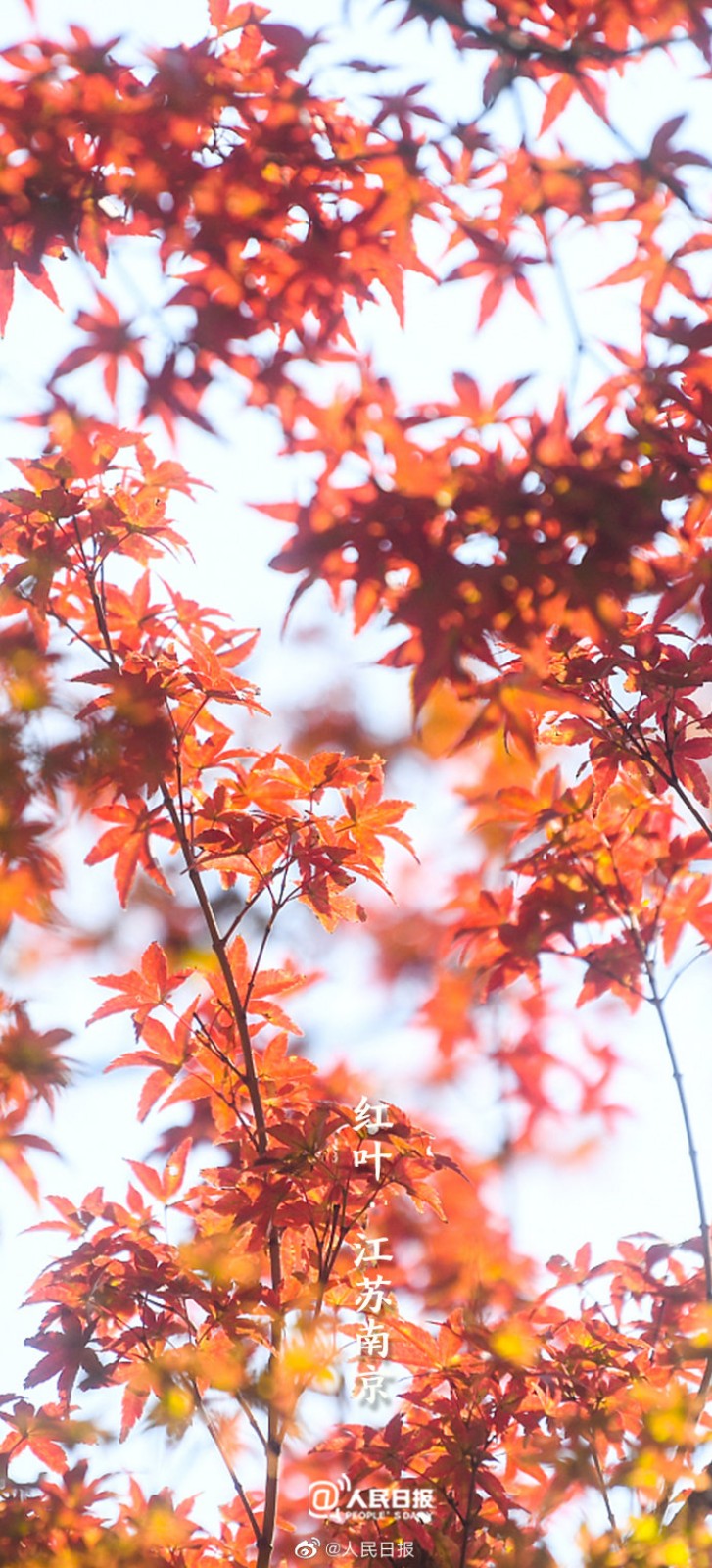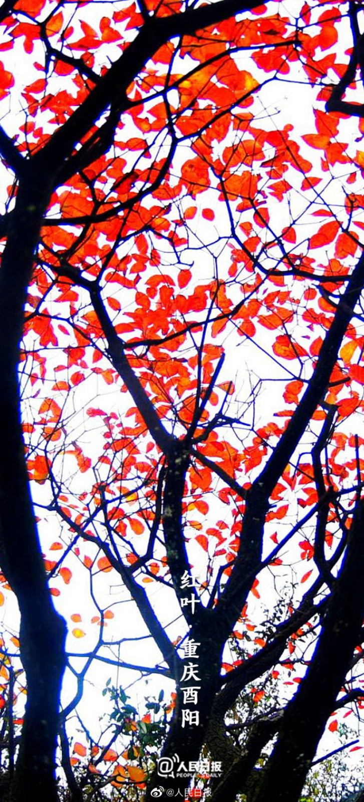 近日,全国各地红叶陆续变色,秋天进入高饱和度模式。层林尽染,远望如画,你家的红叶红了吗?你想和谁一起赏红叶?(人民日报微博)