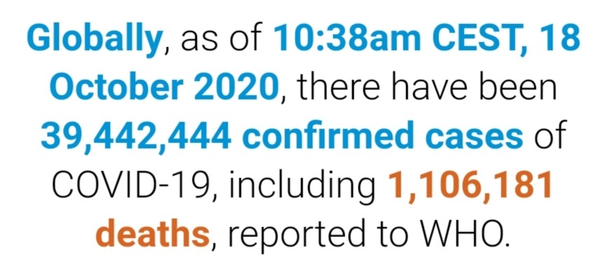世卫组织:全球累计新冠肺炎确诊病例超过3944万例