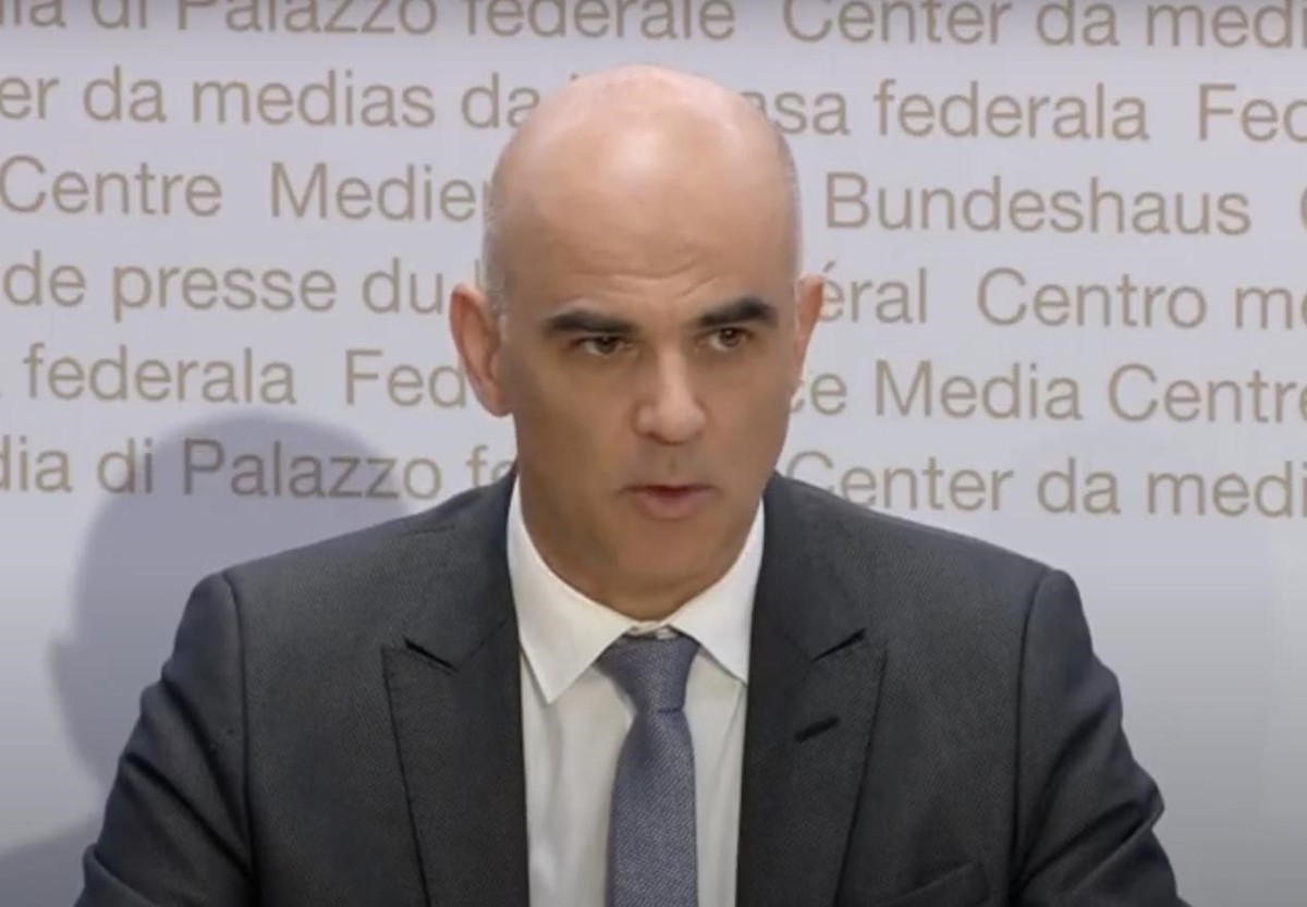 △瑞士联邦主席索马鲁加出席当天的新闻发布会(图片来源于瑞士联邦委员会官网)
