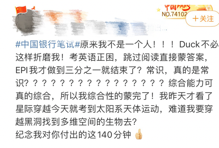 随着中行笔试登上热搜,一场大行热搜接力赛正式打响。