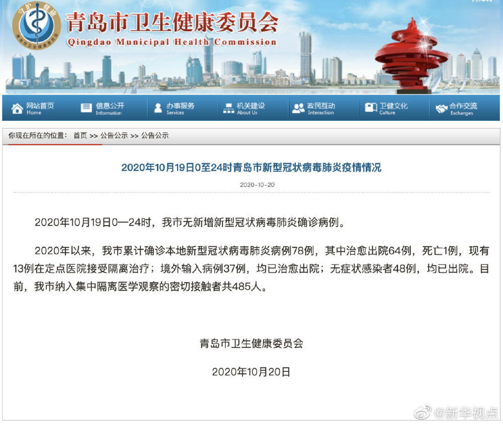 【 青岛19日无新增确诊病例】2020年10月19日0—24时,青岛市无新增新型冠状病毒肺炎确诊病例。