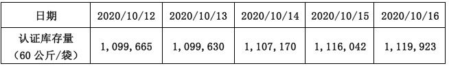 国际方面,阿拉比卡咖啡期价震荡下行,罗布斯塔咖啡期价盘整运行。截至10月16日,ICE(纽约)咖啡2012合约收报107.25美分/磅,较10月9日下跌4.30美分/磅,跌幅3.85%;ICE(伦敦)咖啡2011合约收报1260.00美元/吨,较10月9日上涨13.00美元/吨,涨幅1.03%。