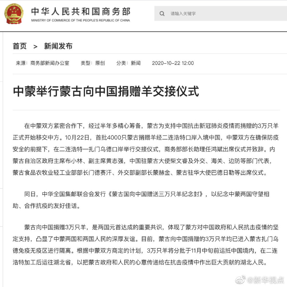 【首批4000只蒙古国捐赠羊入境】10月22日,首批4000只蒙古国捐赠羊经二连浩特口岸入境中国,中蒙双方在确保防疫安全的前提下,在二连浩特—扎门乌德口岸举行交接仪式。