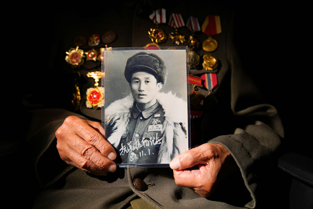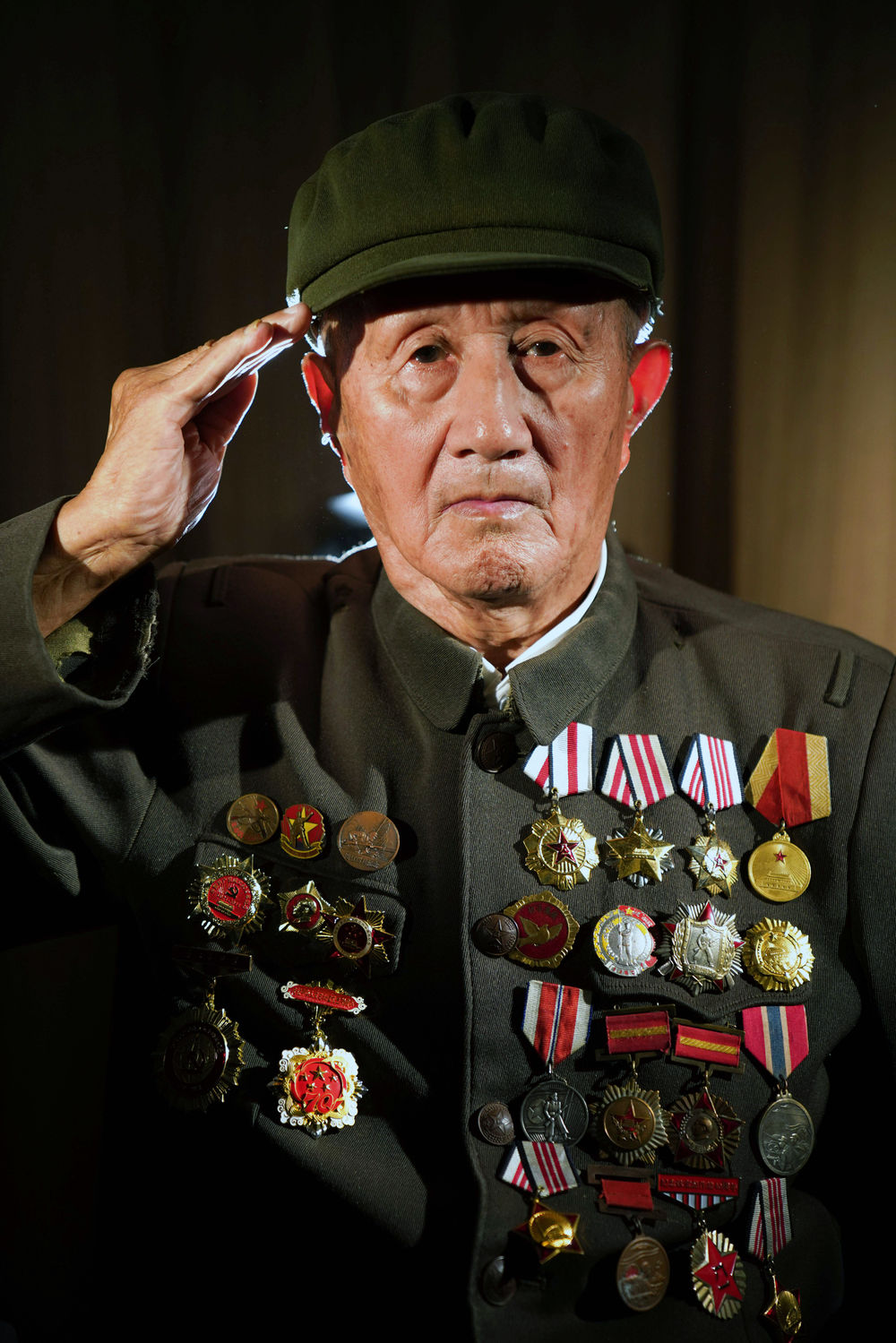 在黑龙江省牡丹江市拍摄的志愿军老战士庞兴海(9月23日摄)。新华社记者 王松 摄