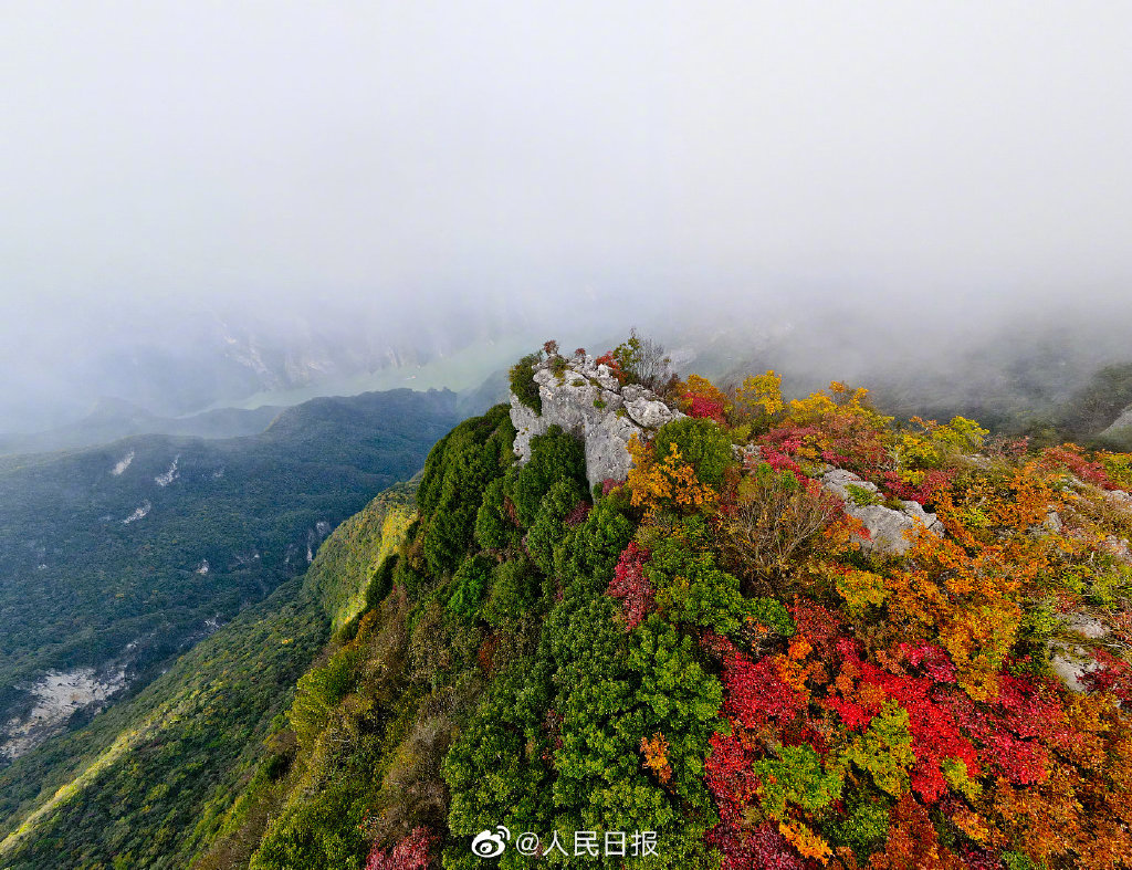 航拍重庆巫山红叶,万山红遍、层林尽染、美不胜收! (来源:人民日报微博)