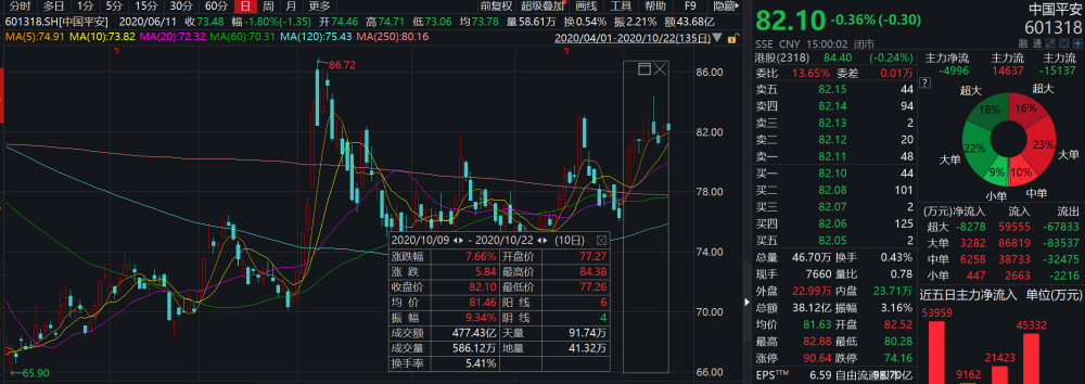 中证君注意到,陆金所控股10月8日宣布赴美上市后,中国平安的股价从10月9日开盘的77.27元/股涨至10月22日收盘的82.10元/股,累计涨幅为7.66%。