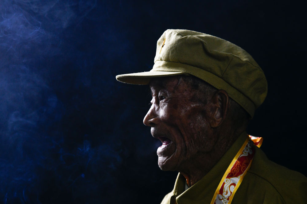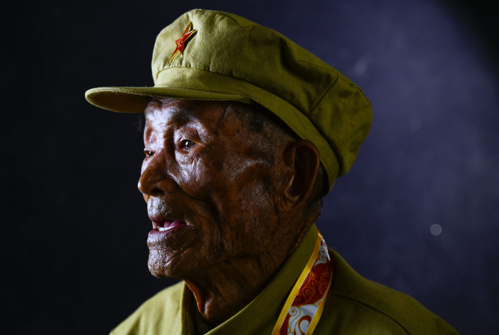 在天津市拍摄的志愿军老战士杨树柏(9月23日摄)。新华社发(孙凡越 摄)