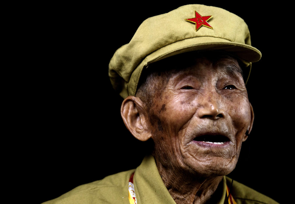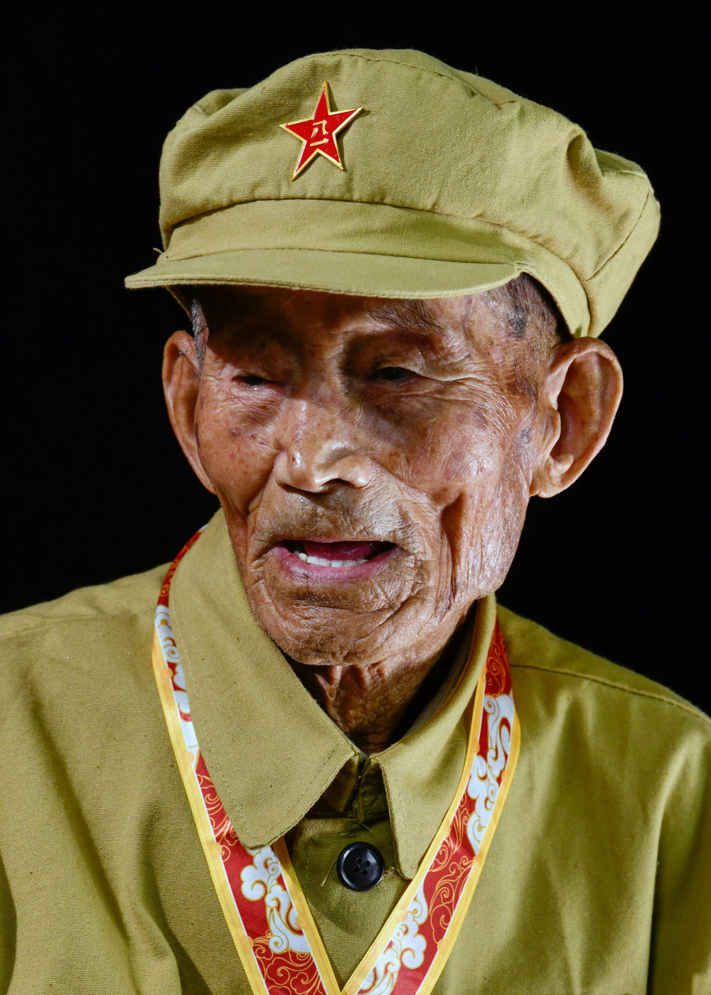 在天津市拍摄的志愿军老战士杨树柏(9月23日摄)。新华社发(赵子硕 摄)