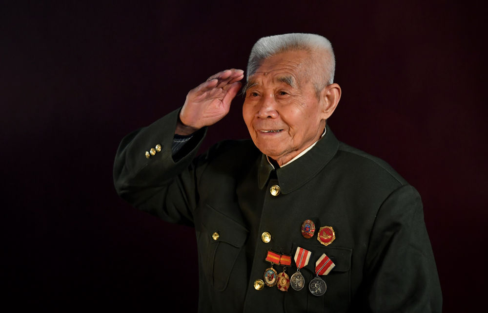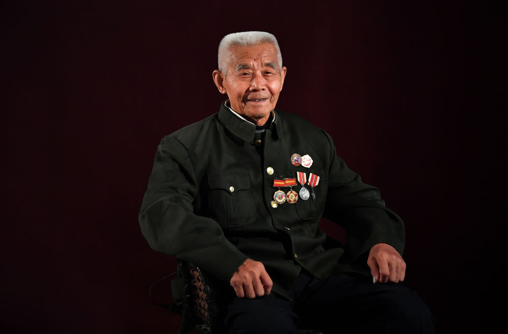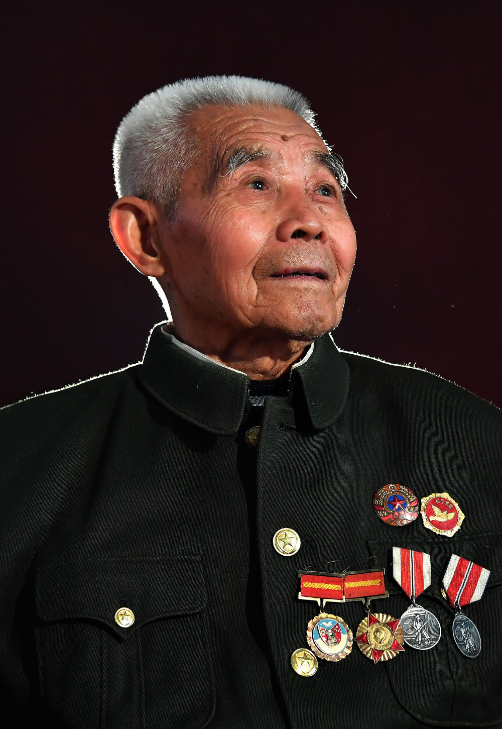 在陕西省西安市拍摄的志愿军老战士解永江(10月10日摄)。新华社记者 刘潇 摄
