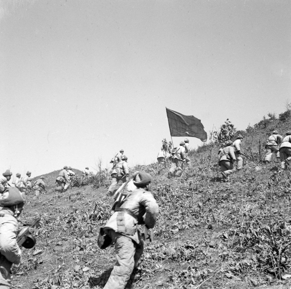 1952年3月17日,中国人民志愿军战士们向敌人发起进攻。新华社记者 钱嗣杰 摄