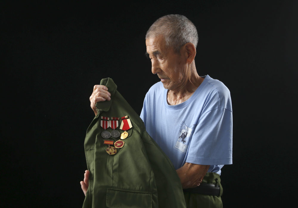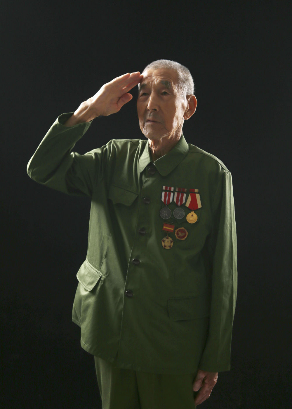 在河北省遵化市拍摄的志愿军老战士许万贺(10月2日摄)。新华社记者 杨世尧 摄 许万贺,1930年生,河北遵化人,1950年随部队入朝。为保护重要战略物资,许万贺和战友不顾敌机在头顶盘旋轰炸,扑向火海奋勇守护。在朝鲜的5年间,许万贺3次负伤,荣立二等功、三等功各1次。