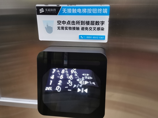 运用“空中成像”技术的无接触电梯按钮,在合肥高新区部分办公楼投入使用。(王仁宏 摄)
