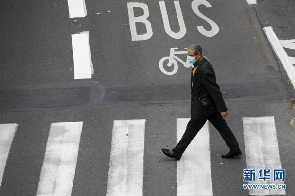 10月15日,在比利时布鲁塞尔,一名男子戴口罩出行。