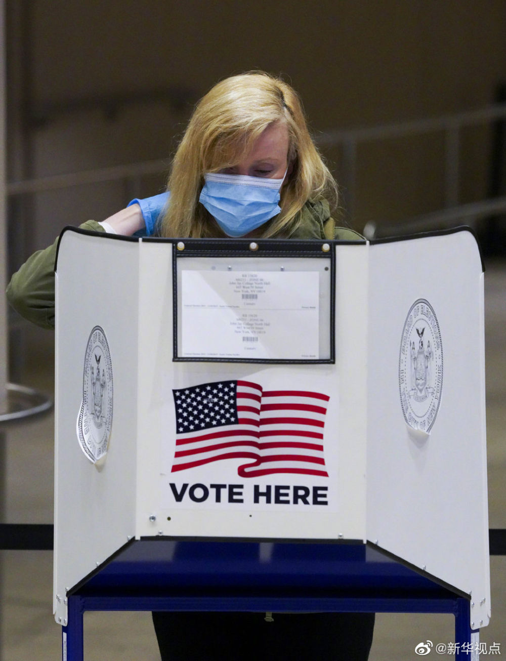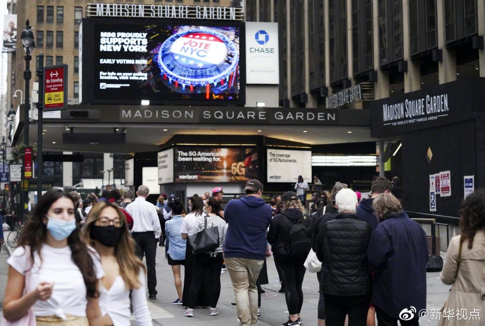 美国大选投票日是11月3日,但多地已经开始提前投票。10月24日,选民在美国纽约麦迪逊花园广场投票点提前投票,纽约州2020美国大选提前投票当日启动。