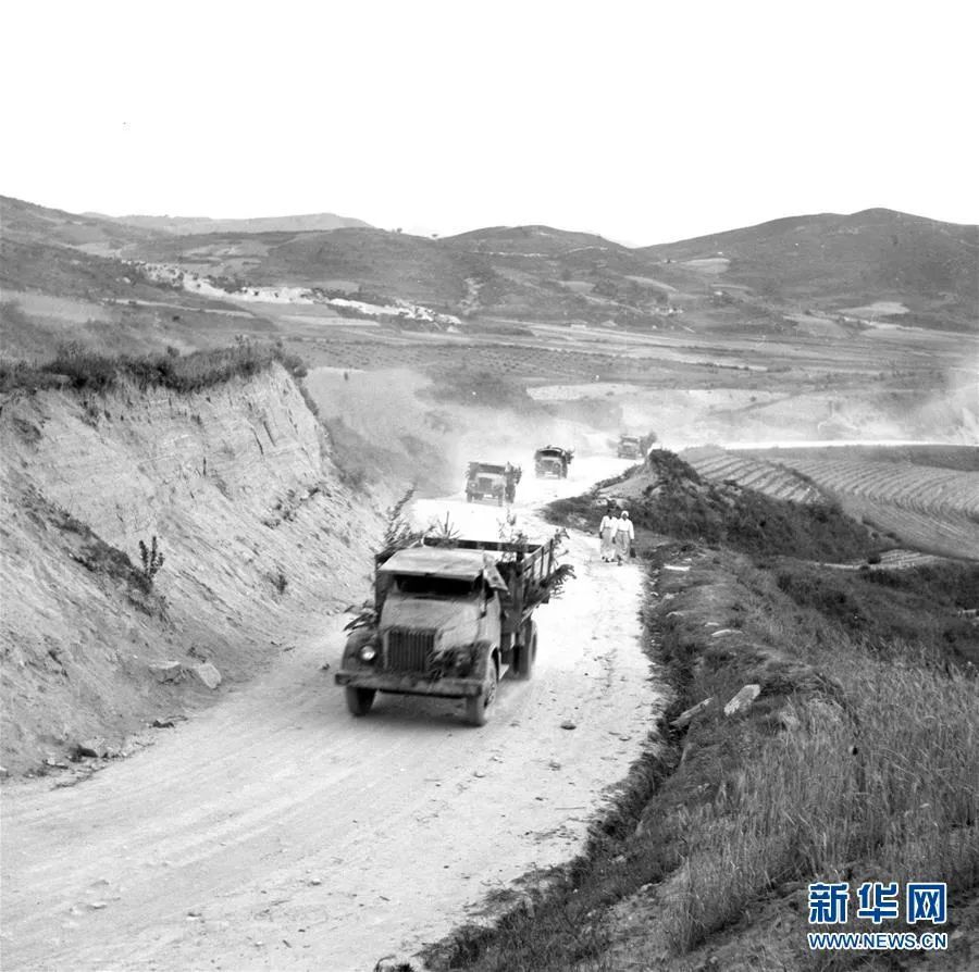 抗美援朝时期,中国人民志愿军运输部队克服一切困难,为前方运送各种物资。图为运输部队的车辆行进在运输线上(1952年6月摄)。新华社发