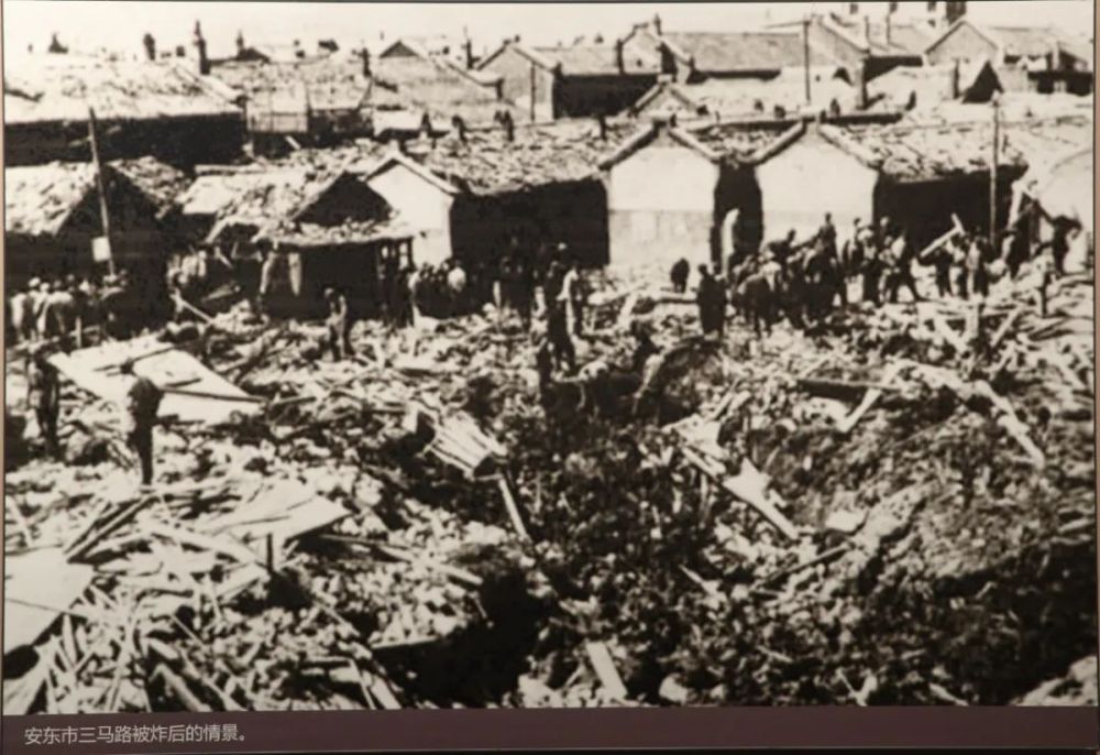 不仅是桥梁,1951年的4月,美机越过中朝边界,对安东三马路一带先后实施两次轰炸。在这次惨案中,99名安东市民被当场炸死,39人受重伤,196人受轻伤,1508间房屋被炸毁。当时的三马路被夷为废墟,血流成河。
