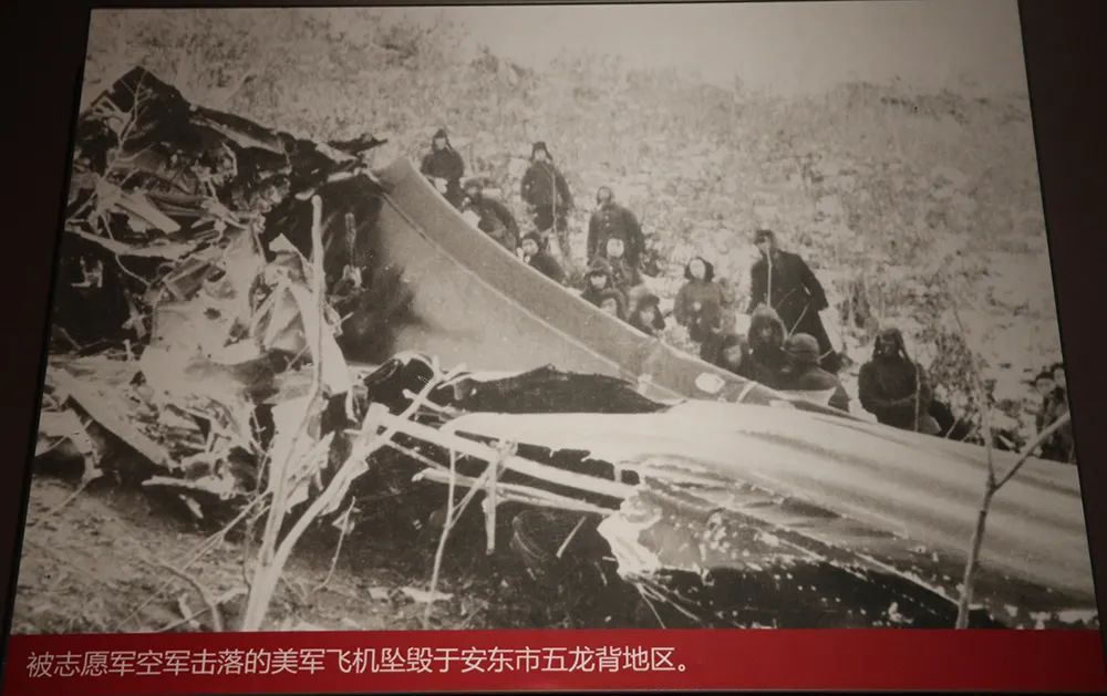 翻拍历史照片:被志愿军空军击落的美军飞机坠毁于安东市五龙背地区。图源:新华每日电讯
