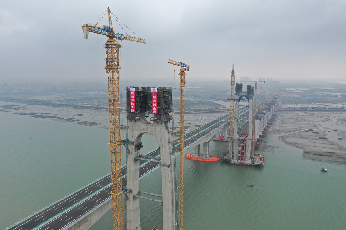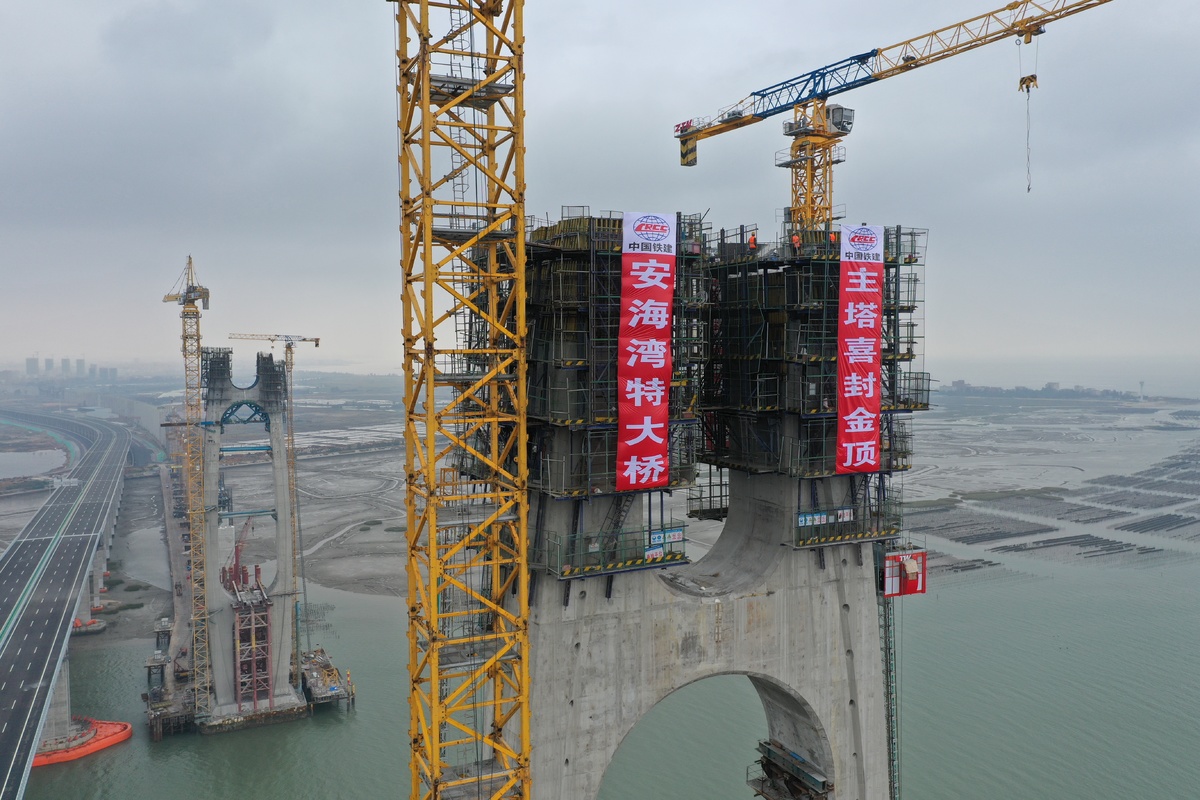 近日,全国首座高铁无砟轨道跨海斜拉桥——安海湾特大桥主塔顺利封顶,为全线顺利施工打下坚实基础。该桥建成后将实现时速350公里高铁跨海不减速通行,为今后无砟轨道在更大跨度桥梁应用提供可借鉴的施工经验。