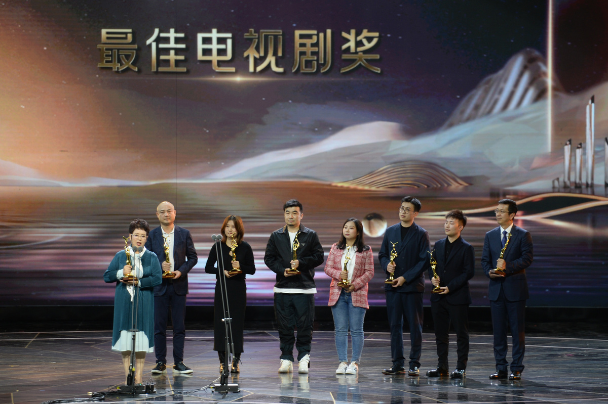 10月18日,荣获最佳电视剧奖《外交风云》的代表在颁奖仪式上发言。新华社记者陈振海 摄