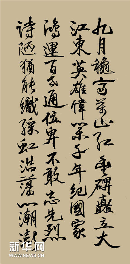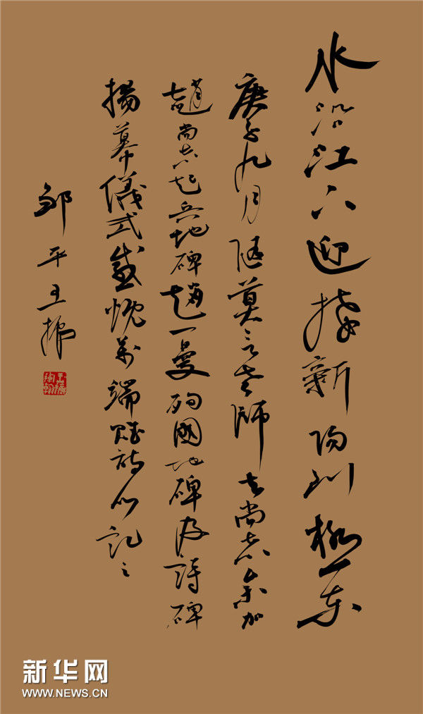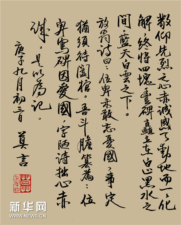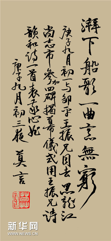 莫言和王振诗韵手书新诗《丰碑矗立大江东》