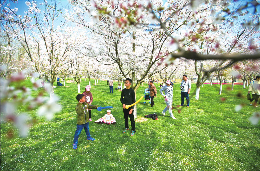 “公园负氧离子含量始终在3000以上,最高值高达4000左右,与瀑布、森林的环境条件一致,极有利于人体健康。”中华海棠园工作人员介绍说,这座以海棠为主题的公园,107个品种、近5万株海棠树蕴含着千年海棠故事,串联起古朴典雅的苏州香山帮建筑,既是盐城新城的新绿,又是古文化的传承。