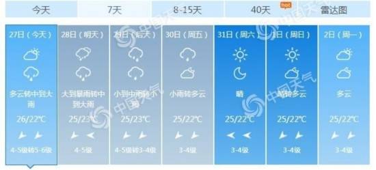 受“莫拉菲”和冷空气共同影响,海南省海域及陆地先后有强风雨天气。海南省气象台预计,27日中午前后起本岛文昌、琼海到三亚一带海面,风力逐渐增大到8级,阵风9-10级;北部湾海面,本岛乐东、东方到海口一带海面,东北风5-6级,阵风7-8级,27日夜间起增大到8级,阵风9-10级,28日白天起减弱到6-7级,阵风8级。