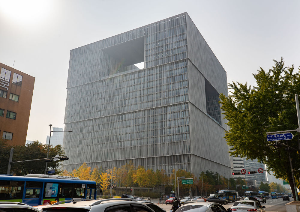 ↑这是10月27日在韩国首尔龙山区拍摄的爱茉莉太平洋总部大楼。
