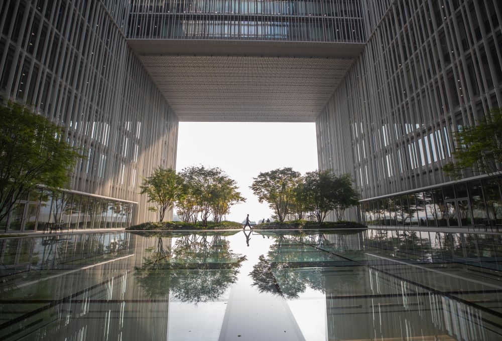 ↑这是10月27日在韩国首尔龙山区拍摄的爱茉莉太平洋总部大楼内部。