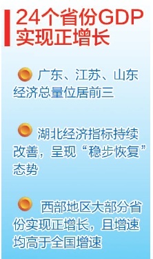 经济日报记者盘点发现,截至10月27日,前三季度实现正增长的省份达到24个。相比上半年,北京、广东、山西、山东、河北、陕西、河南、海南、吉林等省份前三季度经济增速均实现了由负转正。河北、江苏、浙江、安徽、福建、江西、山东、湖南、重庆、四川、贵州、云南、陕西、甘肃、宁夏等多个省份实现三次产业全面增长。