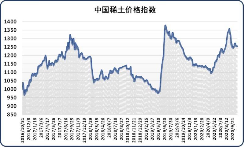 新华财经北京10月28日电(刘星麟)28日,中国稀土价格指数报1253.67点,较前一工作日下跌2.01点,跌幅为0.16%。氧化铽价格上涨,市场现货集中度高,低价货源缩紧,上游厂家报价坚挺,实际成交量不多。