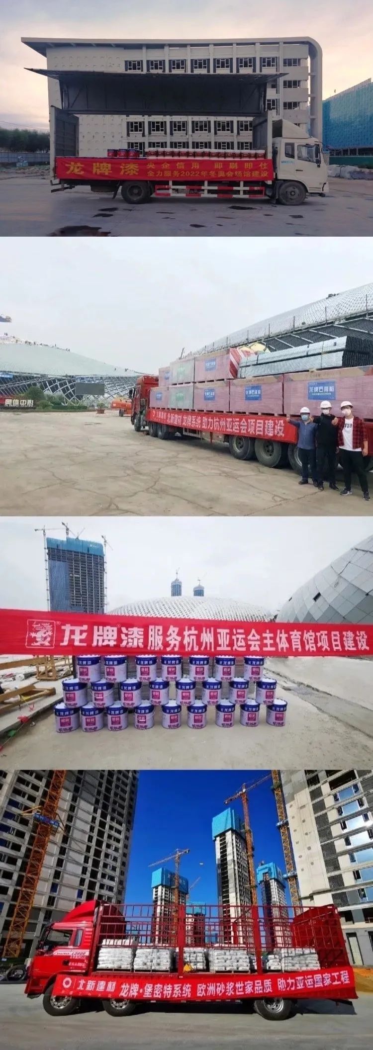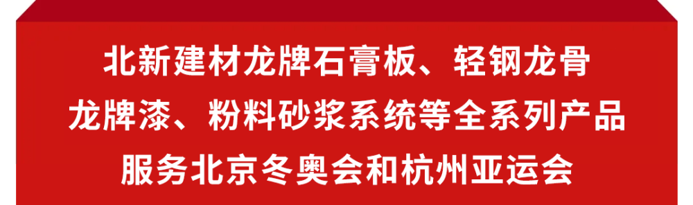 北新建材充分发挥在新型建材、绿色低碳、节能环保等多领域综合技术优势,龙牌石膏板、轻钢龙骨、龙牌漆、堡密特砂浆系统、龙牌岩棉保温系统、粉料系统等全系列产品以高品质、绿色化和完善的系统解决方案全面应用于北京冬奥会和杭州亚运会项目。