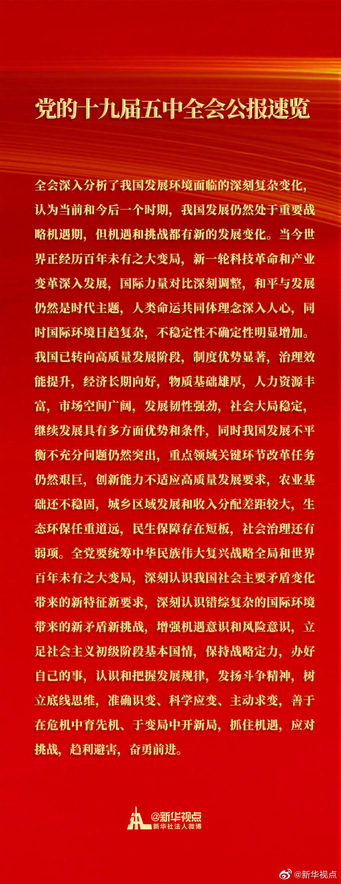 【党的十九届五中全会公报速览 | 全会提出了到二〇三五年基本实现社会主义现代化远景目标】