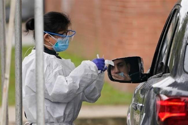 10月21日,在美国纽约州劳伦斯,医务人员进行新冠病毒检测取样。新华社/美联