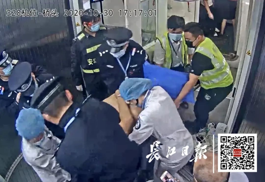下午5时8分,飞机降落在武汉天河国际机场328号机位,守候在廊桥口的民警和机场医护人员迅速登机,经现场初步抢救并判断杨先生仍有生命体征。