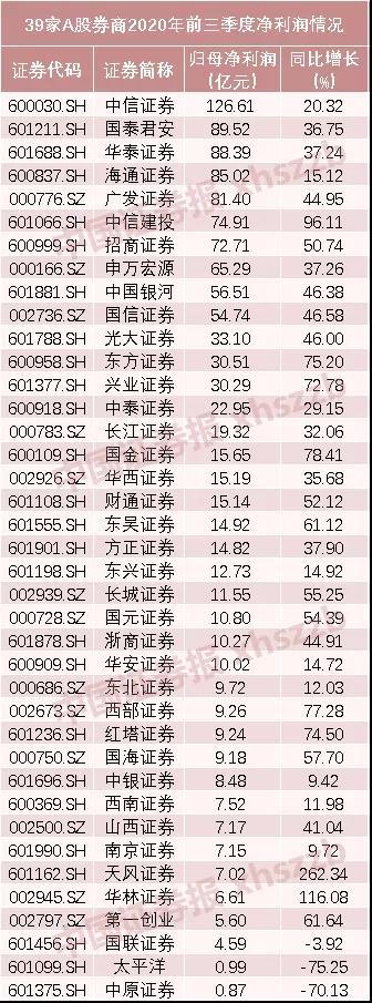 从净利润指标看,A股39家上市券商前三季度归母净利润累计达1155.77亿元。