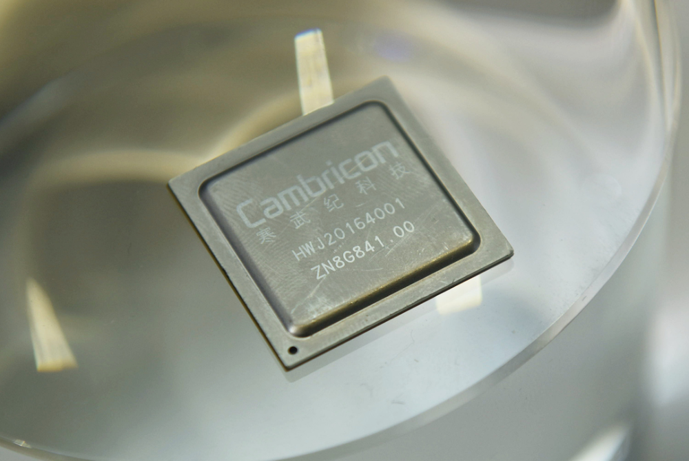 ▲2017年11月7日,上海,寒武纪新一代AI芯片。图/视觉中国
