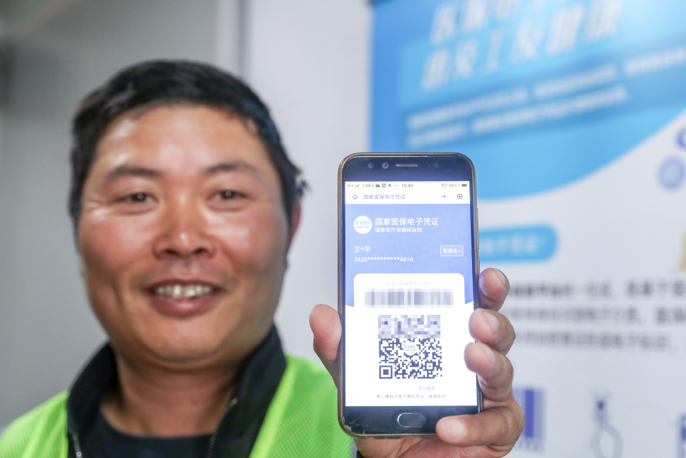 ▲2020年10月20日,来自安徽的农民工王亚平展示已激活的医保电子凭证。图/新华社发