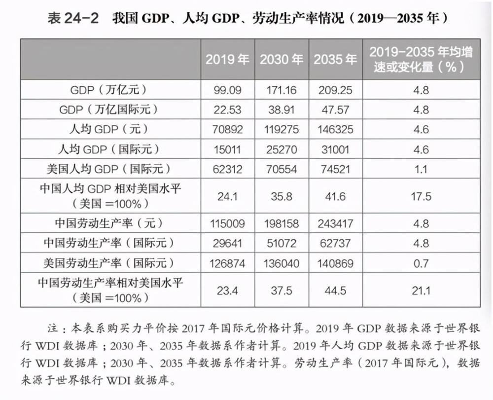 如果用具体数据来体现这些表述的话,根据清华大学国情研究院院长胡鞍钢预测,从现在起到2035年的15年,主要经济指标增速可以达到5%左右,即用15年时间可以实现“翻一番”的目标。届时,中国有望实现从中高收入国家向高收入国家的过渡。