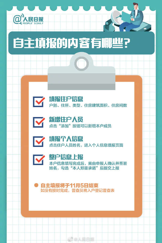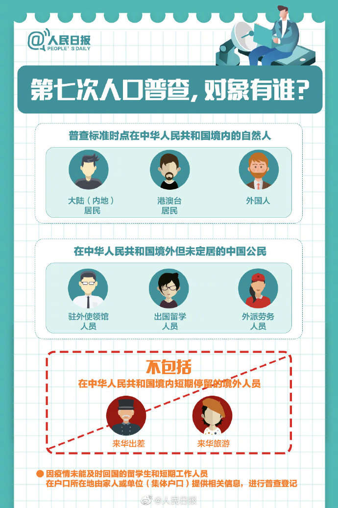 第七次全国人口普查登记11月1日开始,700多万人口普查员今起上门登记。本次人口普查将采取电子化方式开展普查登记,同时倡导普查对象自主填报个人和家庭信息。哪些人是人口普查对象?如何进行自主填报?九张图带你了解第七次全国人口普查↓↓