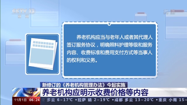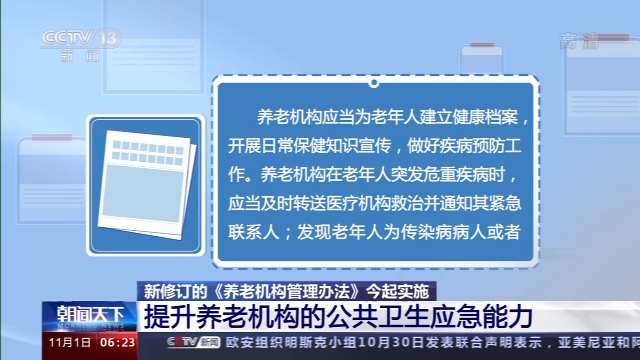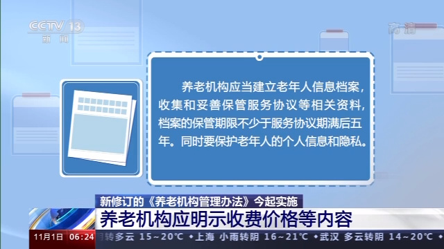 新修订的《养老机构管理办法》从今天(11月1日)起正式实施,这也是自2013年《养老机构管理办法》实施以来首次全面修订。