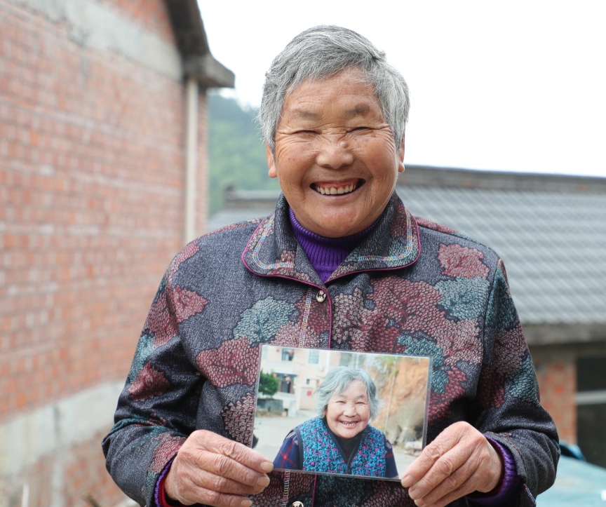 (“拍照时我特意换上了新衣服哩!”拿着民警为她拍的照片,祝雨美老人家美滋滋地告诉记者。)