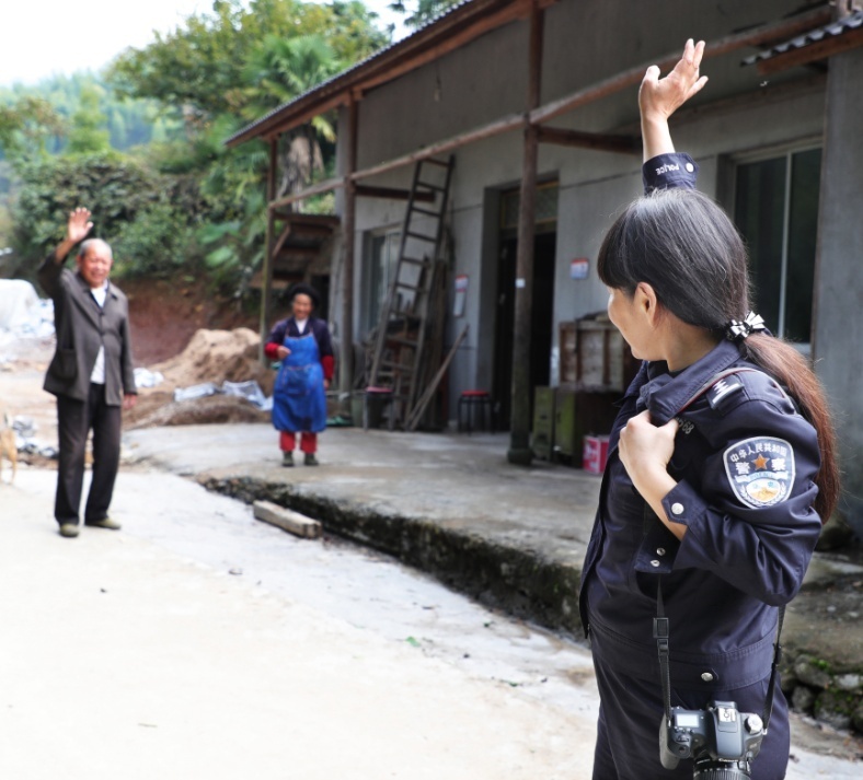 (“就送到这里吧!”送完照片,民警与汪金水夫妇挥手告别。)