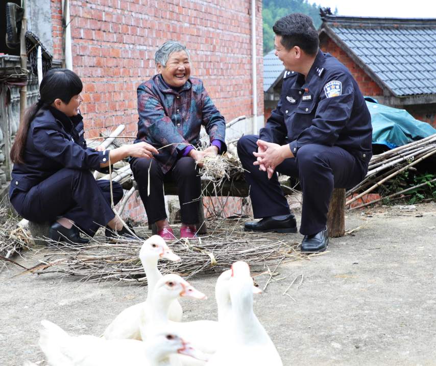 (图为送完照片,民警又跟祝雨美老人家话起了家常。)