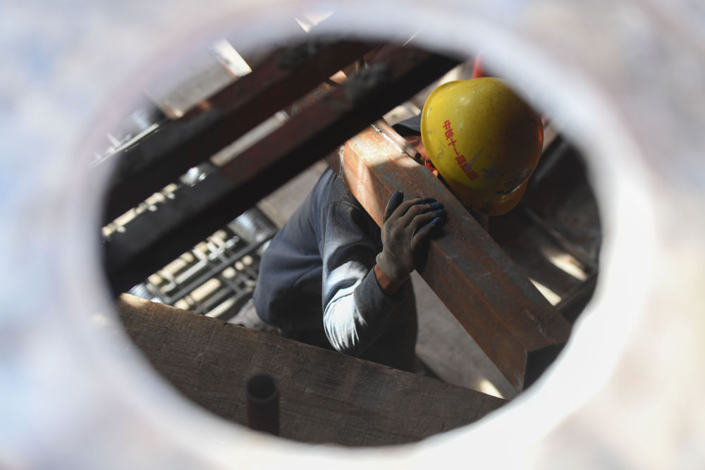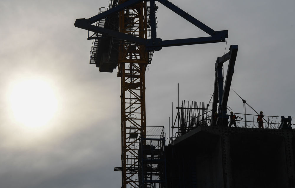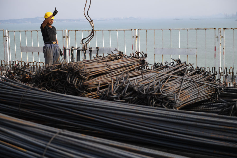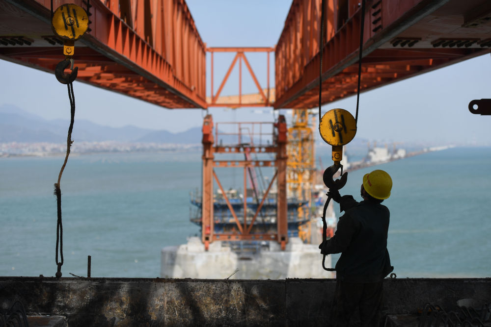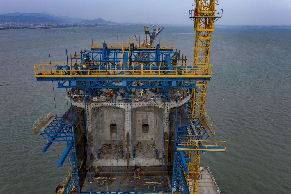 ↑11月2日,中铁十一局工人在新建福厦铁路湄洲湾跨海大桥建设现场施工。