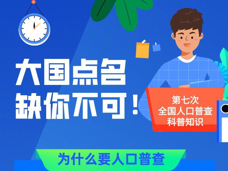 11月1日,700多万普查人员走入千家万户,逐人逐项登记普查信息。大国点名,缺你不可!为什么要进行第七次人口普查?本次普查有哪些新变化?看图了解。详情>>