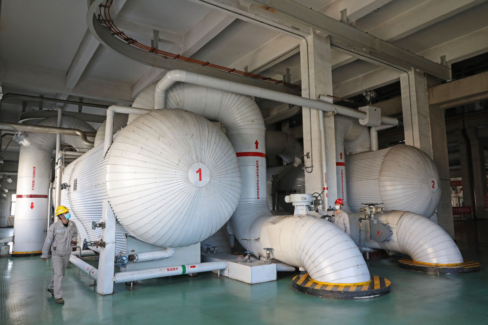 10月12日,工作人员在河北大唐国际张家口热电有限责任公司机房巡查供热设备。 新华社发(武殿森 摄)
