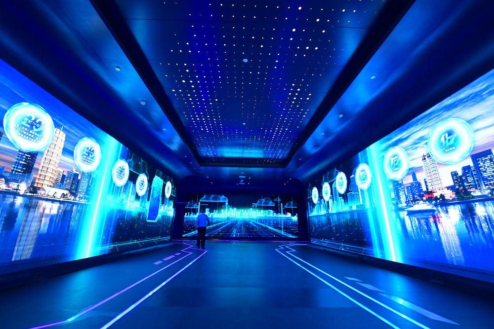 9月14日,参观者在郑州国家高新区网络安全科技馆参观。新华社记者冯大鹏摄