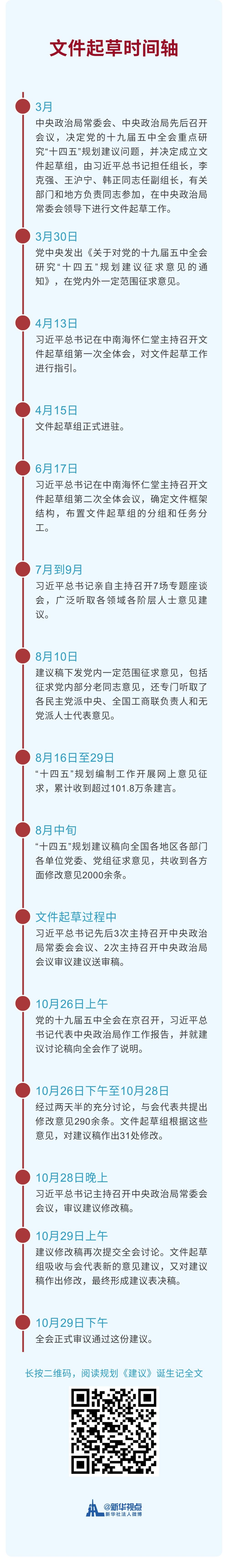 新华社4日播发了规划《建议》诞生记,从这篇重磅文章中,可以提炼出一条清晰的文件起草时间轴。