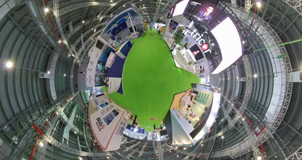 11月3日拍摄的第三届中国国际进口博览会服务贸易展区(全景拼接照片)。新华社记者 张豪夫 摄