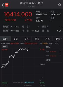 值得关注的是,富时中国A50期货大涨。据Wind数据,截至收盘时,富时中国A50指数期货涨超2%。